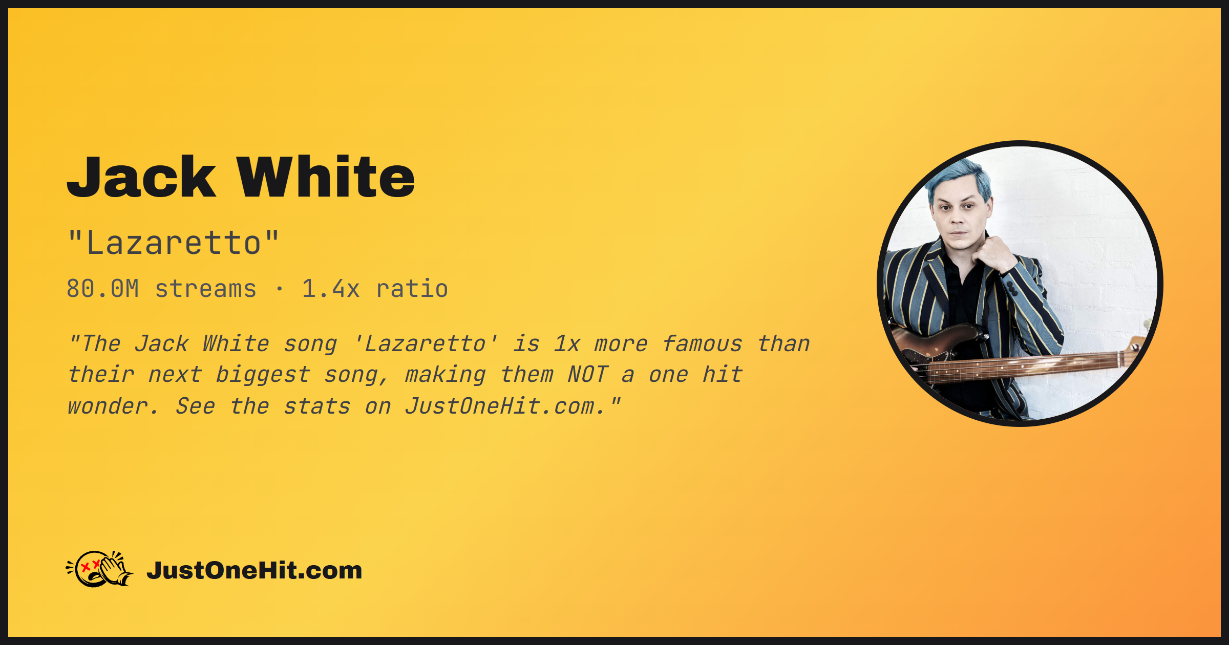 "The Jack White song 'Lazaretto' is 1x more famous than their next biggest song, making them NOT a one hit wonder. See the stats on JustOneHit.com."