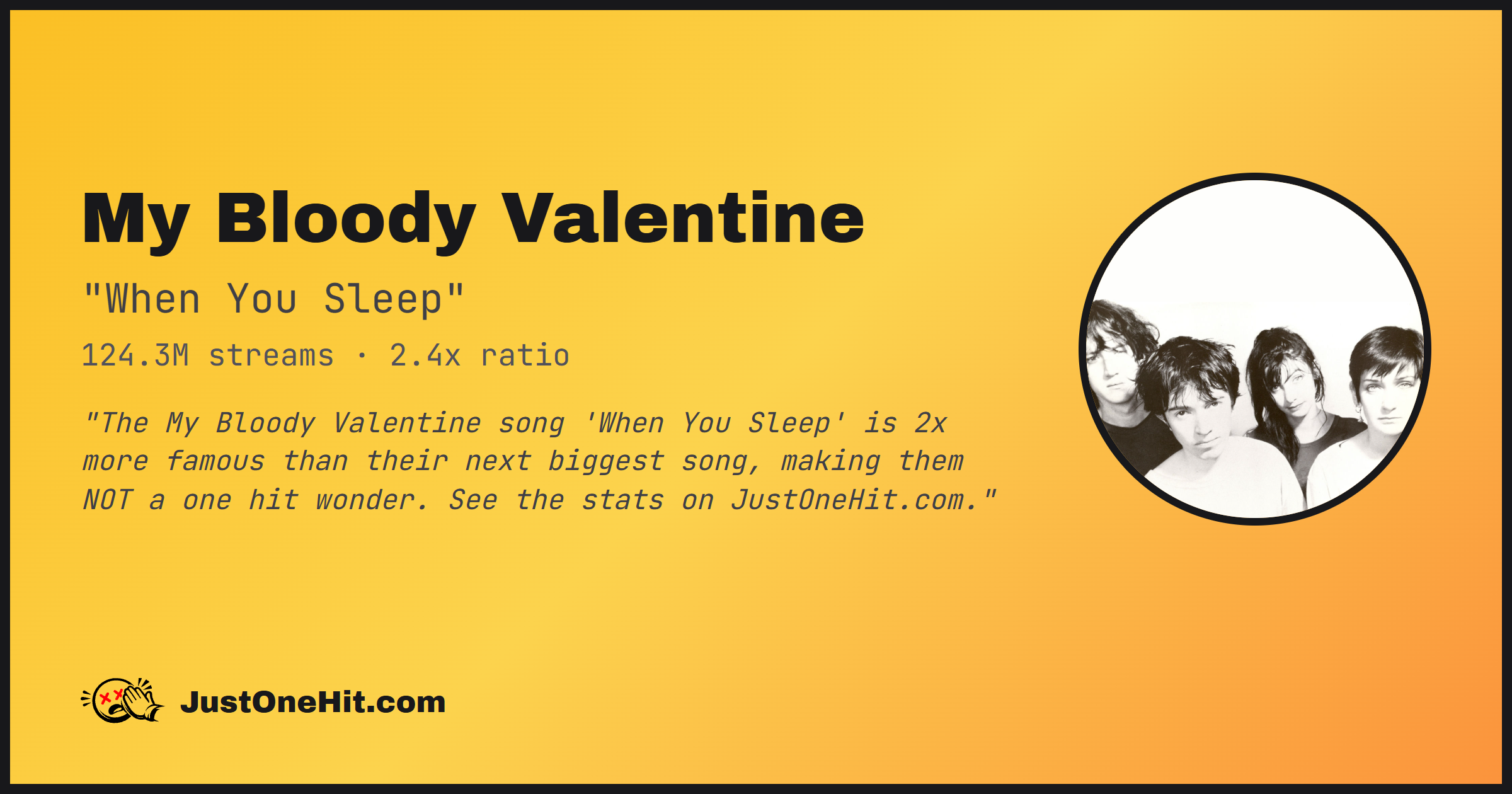 "The My Bloody Valentine song 'When You Sleep' is 2x more famous than their next biggest song, making them NOT a one hit wonder. See the stats on JustOneHit.com."