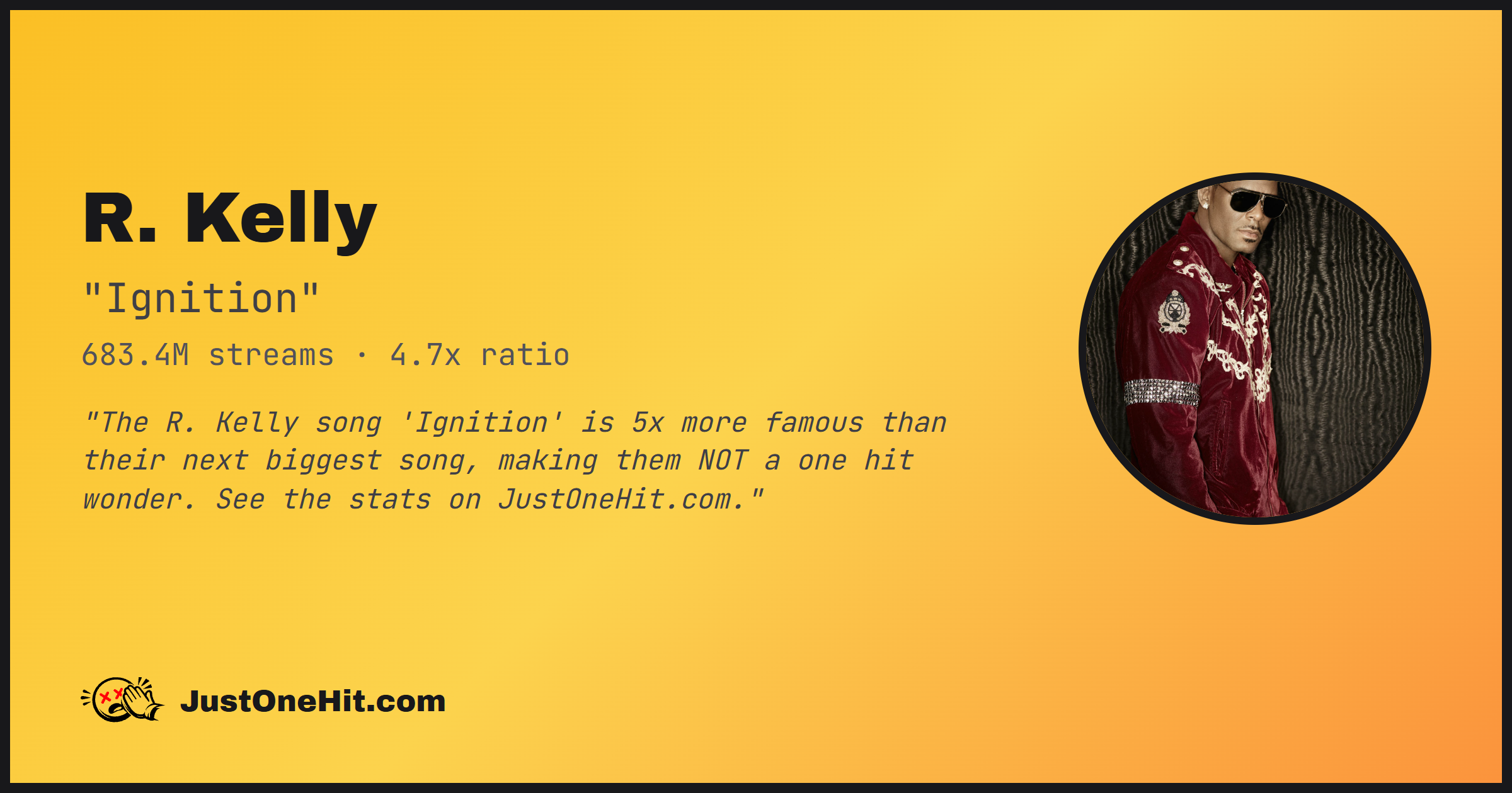 "The R. Kelly song 'Ignition' is 5x more famous than their next biggest song, making them NOT a one hit wonder. See the stats on JustOneHit.com."