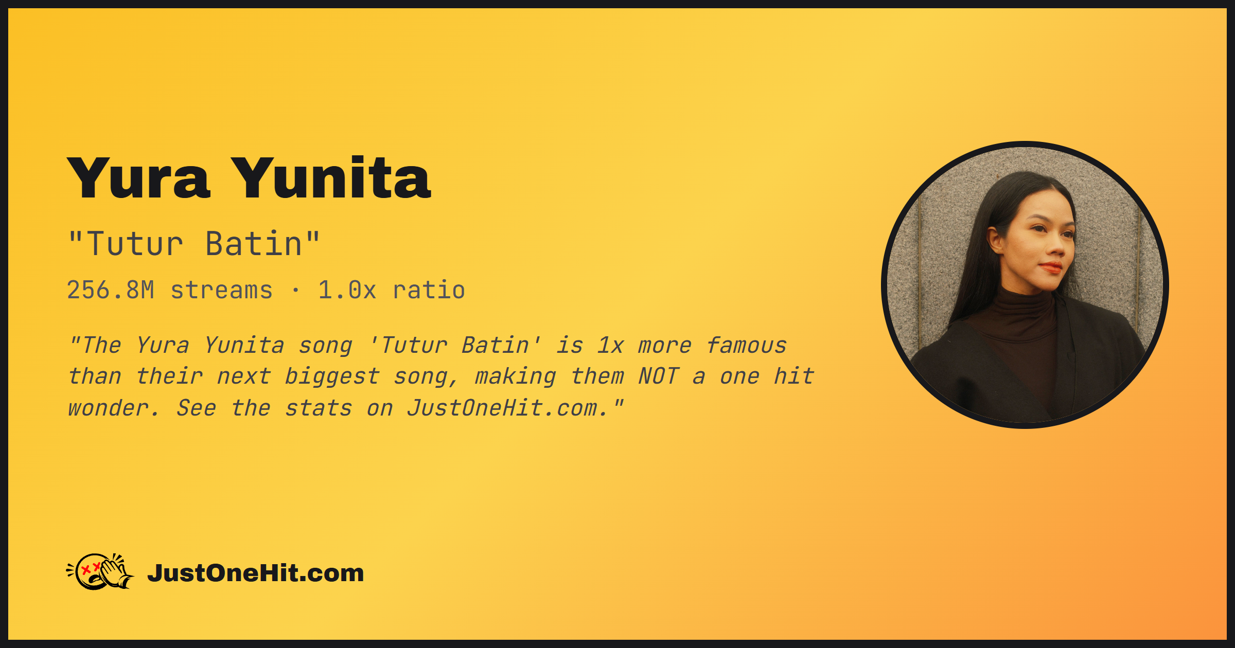 "The Yura Yunita song 'Tutur Batin' is 1x more famous than their next biggest song, making them NOT a one hit wonder. See the stats on JustOneHit.com."